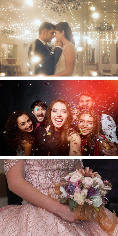Cada celebración es única y nuestro compromiso será garantizar que tu fiesta será una obra maestra, llena de detalles y lujos.